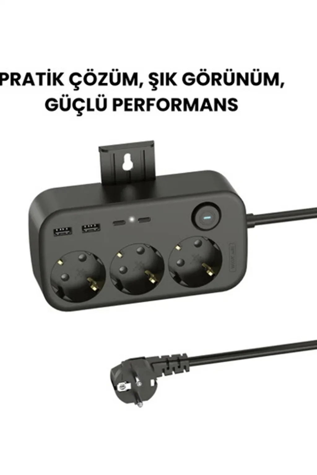 3’lü Akım Korumalı Priz | 2 USB + 2 Type-C Girişli | Anahtarlı ve Duvara Monte Edilebilir Uzatma Kablosu – Siyah Pratik, Güçlü ve Güvenli Ev, ofis ve çalışma alanlarında kablo karmaşasına son verin 3’lü priz girişi, 2 USB ve 2 Type-C portuyla tüm cihazlarınızı aynı anda şarj edebilir, akım koruma özelliği sayesinde güvenli bir kullanım sağlayabilirsiniz.