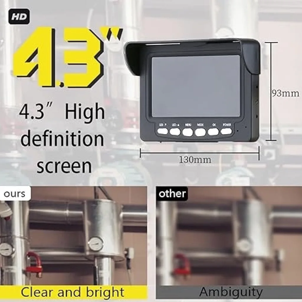 Model: HD810S Piksel: 1080p 4,3 inç LCD Fotoğraf ve video kaydı (hafıza kartı gereklidir) Çözünürlük: 1920*1080 Kamera su geçirmezlik derecesi: IP67 Kamera çapı: 8 mm Aydınlatma: 8 LED (ayarlanabilir) Pil kapasitesi: 2000 mAh Aksesuarlar: Lens koruyucu kapak + mıknatıs + kanca, yan ayna aksesuarlı tek lens Görüş açısı: 67° Odak uzaklığı: 2-10 cm
