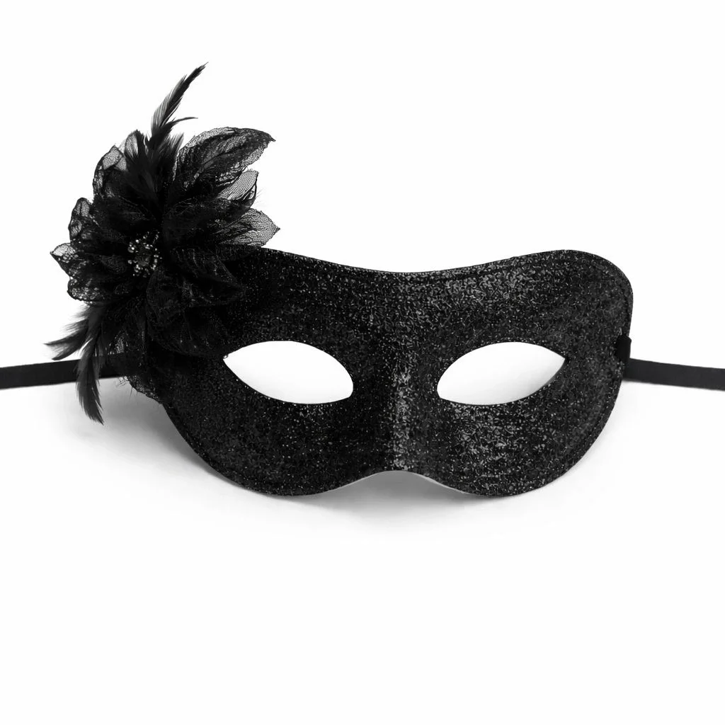 Maskeli partilerde fark yaratmak isteyenler için tasarlanan siyah simli tüylü kadın balo maskesi, zarif Venedik stilini modern glitter dokunuşuyla birleştirir.